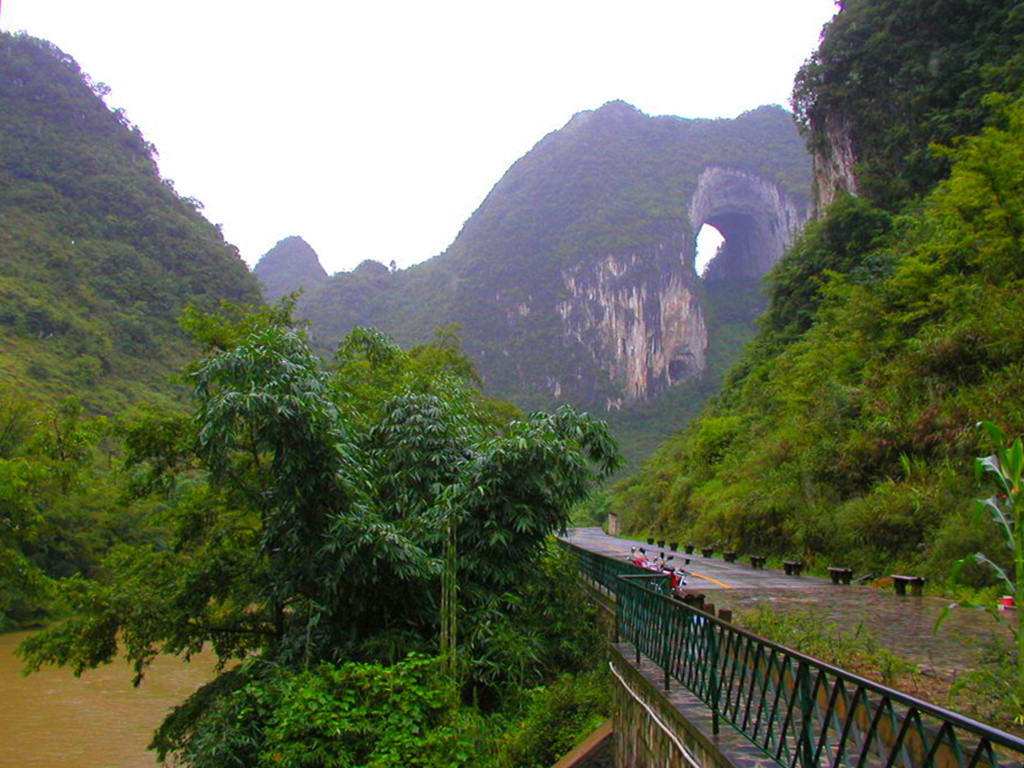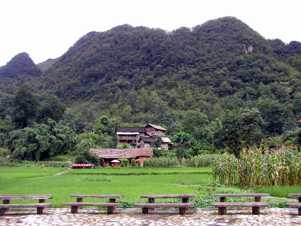 紫云格凸河穿洞风景名胜区地处贵州省西南部,距贵阳市161公里、安顺市76公里,但到紫云以后还有将近20多公里才能到景区。我们去时天正下着雨,7点半出发,快10点才到大河景区。这里还没有很好的开发,门口十分简陋,连个卫生间都没有,要沿着田间小道去找农村最简易的厕所。这里正在大兴土木,据说要盖一个宾馆,总之一切还处在半原始状态,正是这个状态,才留下了格凸河自然质朴的美。