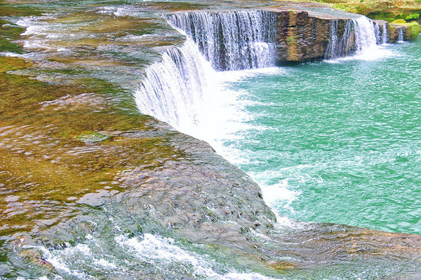 陡坡塘瀑布,这不是第一次看瀑布,瀑布不高,给人以宽厚,踏实的感觉,不似飞流直下,而是层层奔于前,融于水中。
