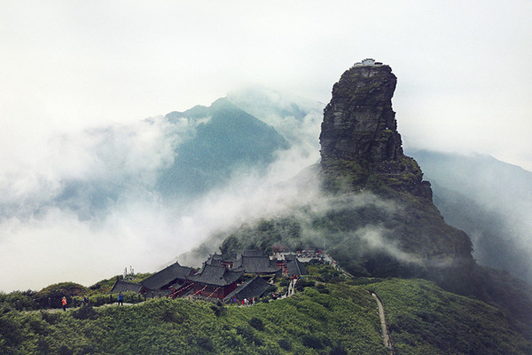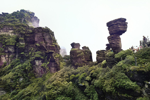 红云金顶的突兀堪称奇特,若有瀑布般的流云飘过可是绝美的。它与蘑菇石一样,像一本厚厚的自然史的册页层叠于此。