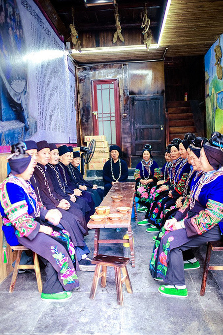 西江苗族过去穿长袍,包头巾头帕,颜色都是黑色的,故称“黑苗”,也称“长裙苗”。
