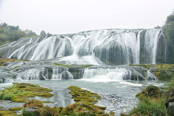 与黄果树的气势磅礴相比,小七孔的瀑布真是步调一致的小家碧玉。