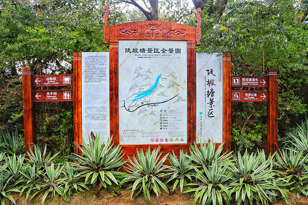 “遥闻水声轰轰,从陇隙北望,忽有水自东北山腋泻崖而下,捣入重渊,但见其上横白阔数丈,翻空涌雪,而不见其下截,盖为对崖所隔也。”这是徐霞客在《徐霞客游记》中对陡坡塘瀑布的描述。
