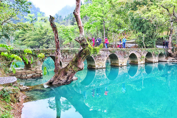 古朴的小七孔桥,柔美恬静的涵碧潭、飞泻而下的拉雅瀑布、潭瀑交错的六十八级瀑布、林溪穿插的水上森林、悠蓝深邃的卧龙潭,已印刻于心。