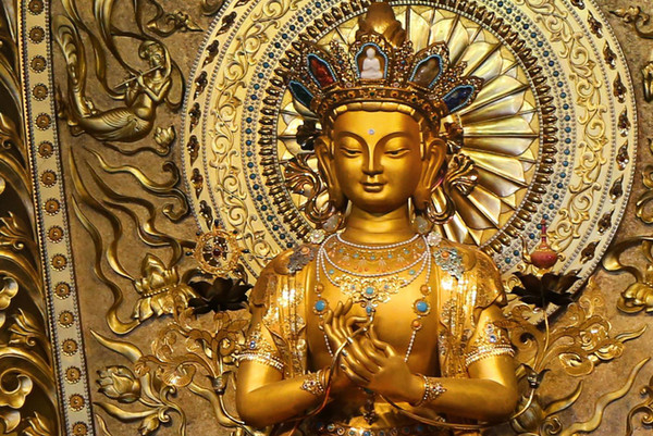 大金佛寺,坐落在梵净山下、太平河畔。寺内一尊耗用五百斤黄金、镶嵌数千颗天然宝石的世界最大“金玉弥勒佛像”。