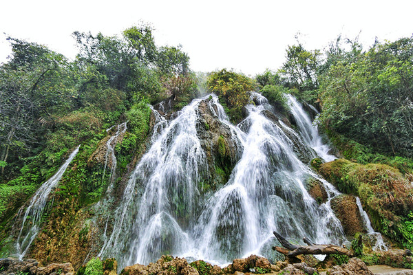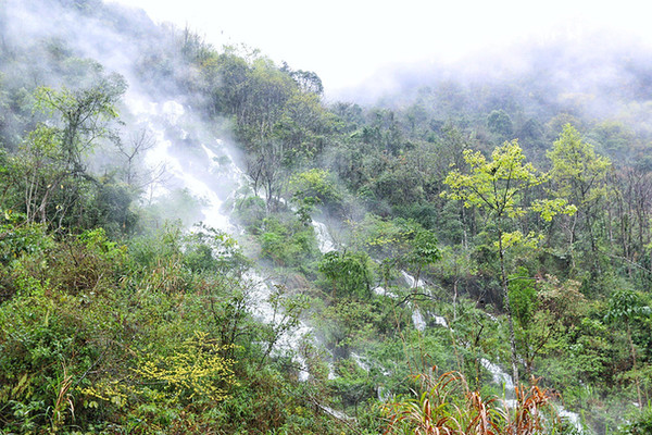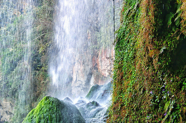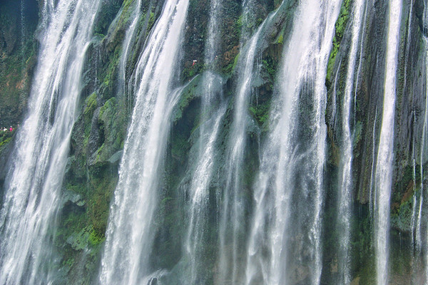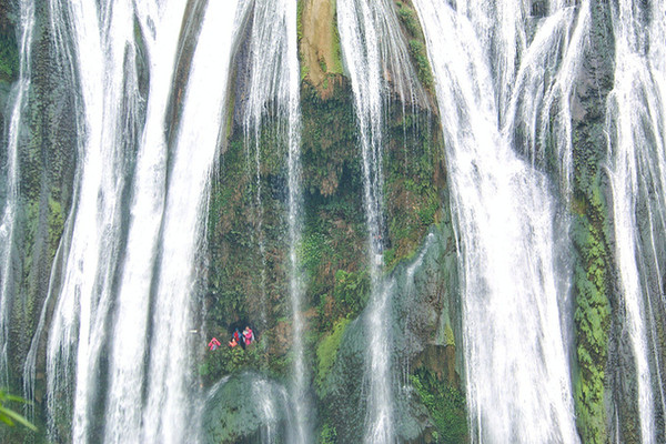 这里的瀑布跟黄果树瀑布很大的不同,从山间,树中奔流而下。