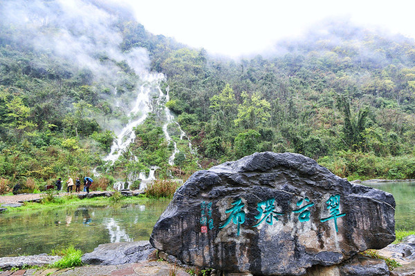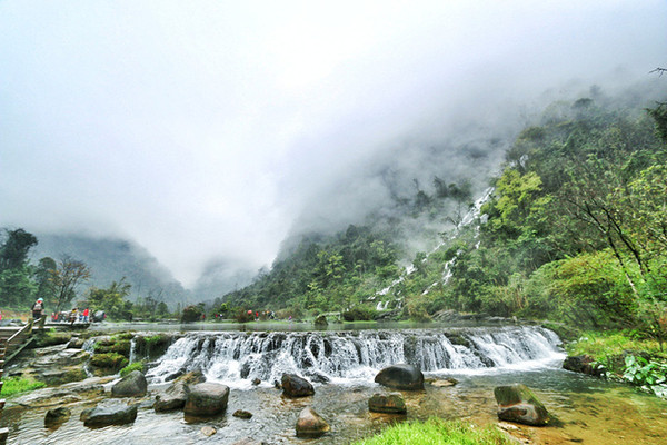 沿河谷伴梯级瀑布而上,一路但见高山流水、绿树红花,但闻泉鸣瀑响、鸟啾虫吟,便油然想起伯牙、子期的知音逸事,更觉眼前诗意盎然,美不胜收。