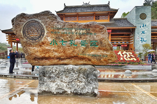 小七孔景区位于贵州荔波县 西南部,距县城28公里,至麻尾火车站36公里。景区北首有一座建于道光15(1836)年的小七孔古桥 ,景区之名由是得之。小七孔景区在宽仅1公里、长12公里的狭长幽谷里有“超级盆景”的美誉。现已经向游客开放的景点有铜鼓 桥、小七孔古桥、涵碧潭、拉雅瀑布、68级跌水瀑布、野鸭池、龟背山、一龙戏九珠、飞云洞 、野猪林、水上森林、卧龙潭等。