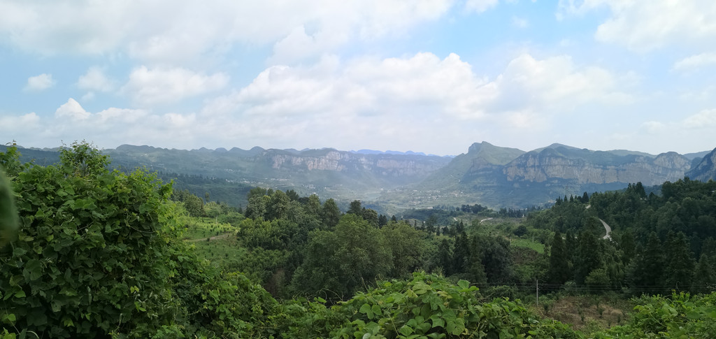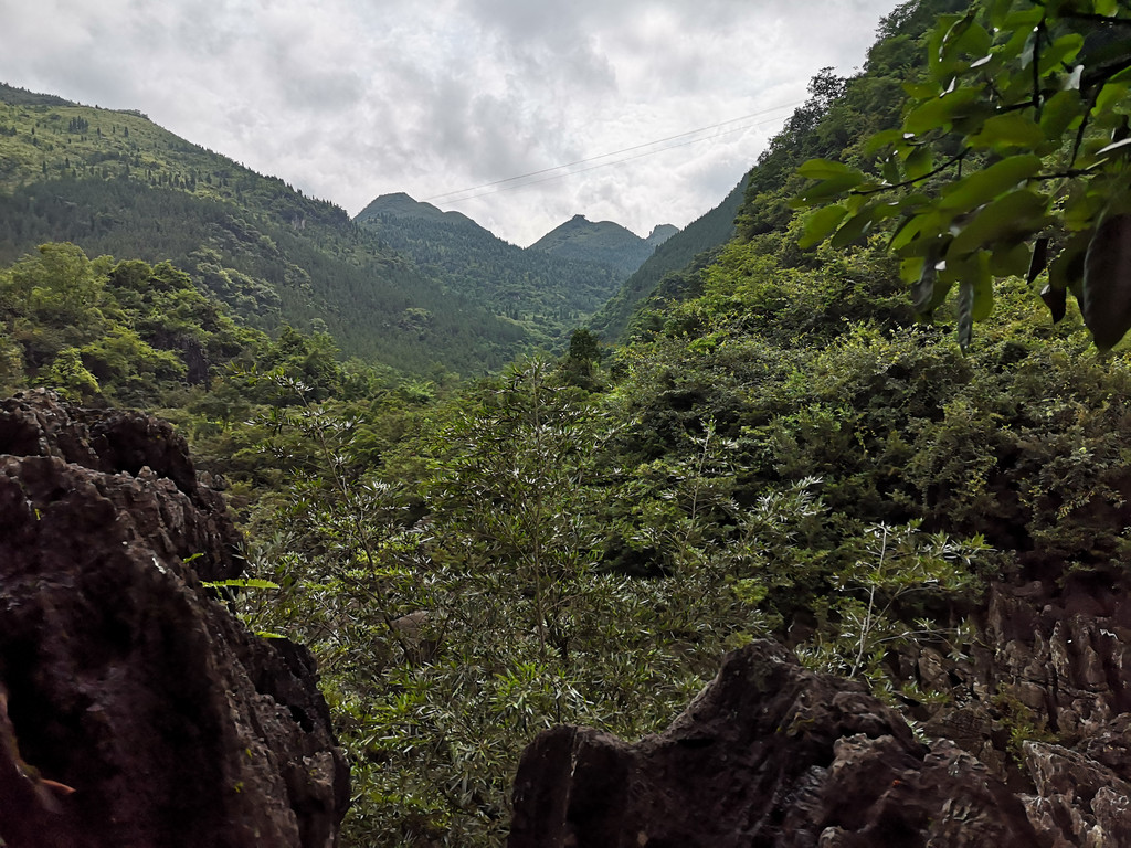 车上高速,前往织金洞。十一点在三岔河马场停车区,服务区围墙外就是美丽的山区风景。