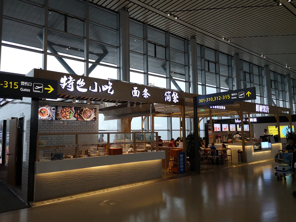 三点钟,时间还早,我们在候机厅的小吃店坐下来,点了一大桌,好好吃了一顿,口味也很适合我们,价格还不贵,比昨晚吃得好多了。
