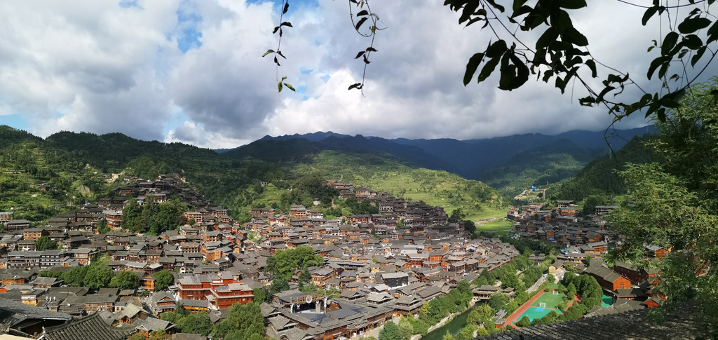 乘上观光车,来到观看整个西江千户苗寨最佳的观景平台,俯瞰下去,吊脚楼鳞次栉比、蔚为壮观。