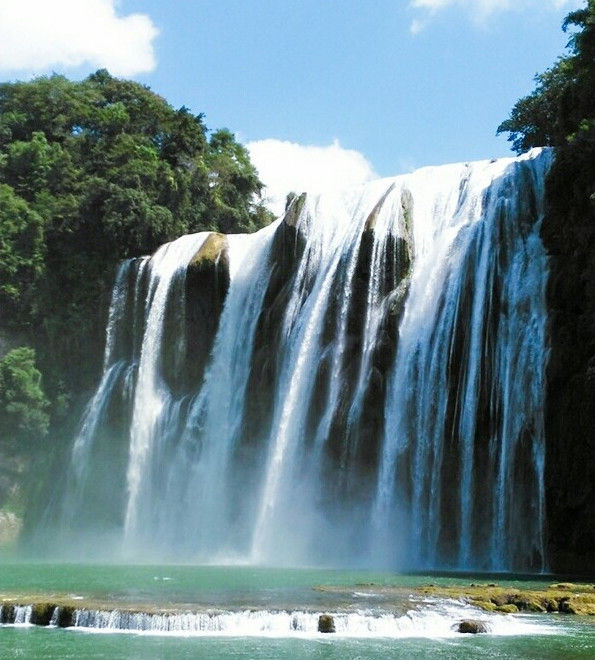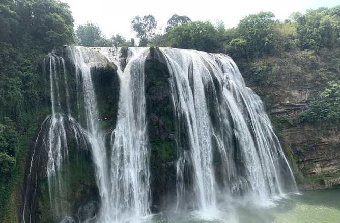 观赏黄果树瀑布的最佳位置就是在正面,黄果树瀑布一直以来都是以流量大而著称的,站在正面能够感受到水的一泻千里的态势,甚至在水量充足的时候,站在正面说话都很难被听到水声震耳欲聋。