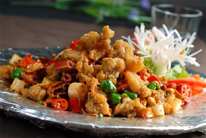 特色菜:鸡渎豆腐、竹荪炖土鸡、干烧鱼、酸菜小豆汤、竹筒烤鱼、阳明凤翅、金钱肉、辣子酱、爆竹鱼、宫保鸡丁、烘杂烩、花拦鸡、明虾鹌蛋鱼等