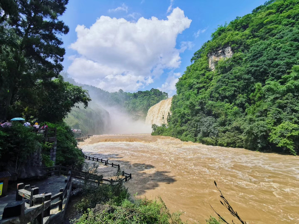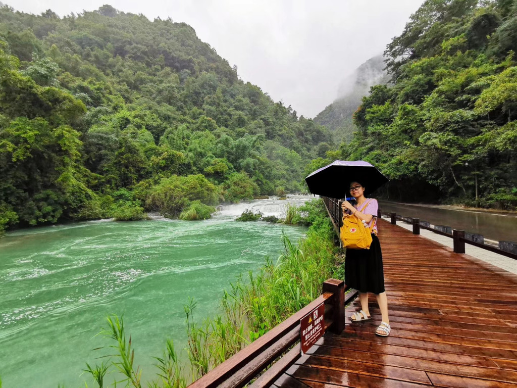 今天是黄果树一日,因前几日大雨,水帘洞和七星桥下段都封闭了,旺季加暑假,排队排好久,肉眼可见的一下阴天一下大晴天。雨后水位暴涨的陡坡塘,跟小时候电视里看到西游记师傅走过的景象有点出入,这水量,白龙马都能给你直接冲走。美女榕好像飞天舞女,还有长在石头上的仙人掌。情怀打卡黄果树大瀑布,大满足!太好看!太震撼了!我忍不住又想背诵一遍课文,“黄果树瀑布,真是一部大自然的杰作!”(喂!)当然,我又在这里看到了徐霞客,这个全国大小景区都去浪的家伙。