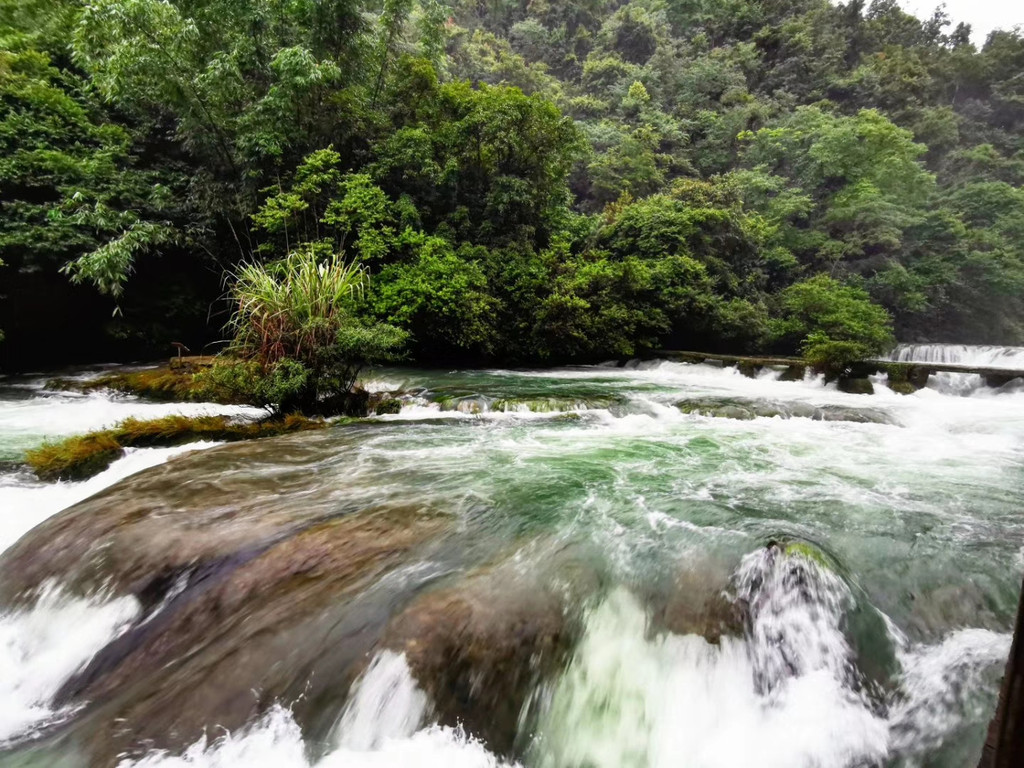 今天是大七孔和小七孔。早上一直下雨的小七孔景区,在忽大忽小的雨水中感受山水动静之美。趟过溪水到达翠谷瀑布的时候已经全身湿透了,我不敢带相机下来,也还好没带下来,但我看到有个爸爸带着孩子和相机直接泡溪水里玩耍了,那个,现在尼康相机已经可以泡水那么高级了吗?