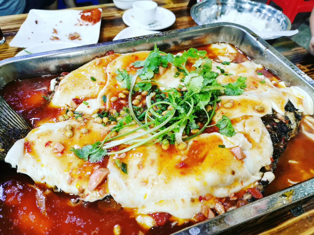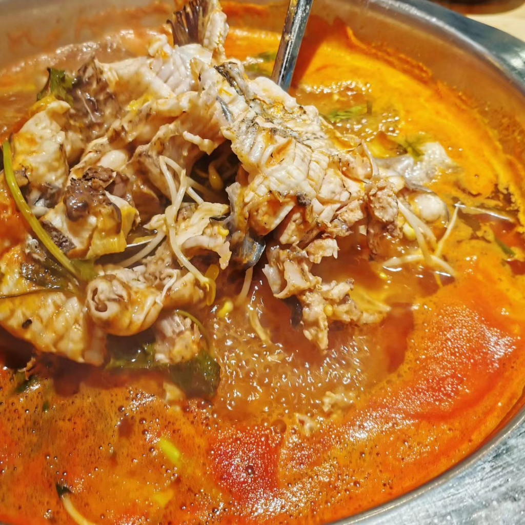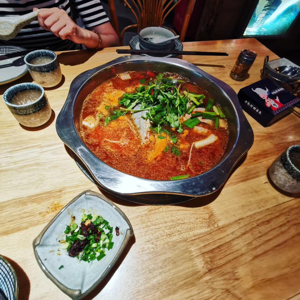 贵阳初见面!到达以后吃晚餐。第一餐决定吃老凯俚酸汤鱼,去了最多人的省府店。来到早,不用等号,伙计问我要什么鱼,我问他推荐我什么鱼,他说尖嘴鱼吧,我说鱼骨会很多吗?他说不会,哦,那就是只有嘴巴很尖咯(喂!)具体来说下这个鱼,这里跟云南一样都配个蘸水碟,然后不知名香料好多,香茅味很重,感觉像加强版的冬阴功,很开胃很好吃,我也说不出个所以,反正很厉害。那个豆腐圆子也很好吃,切开泡芙那样的,把中间蘸水弄一点进去一起吃,蘸水里面有鱼腥草,是的,这里都是鱼腥草狂热份子,什么都有鱼腥草。红糖糍粑也很好吃,绵密米香浓郁,我妈一定超级爱吃这个!猪脚软糯入味,小串也很好吃,是在重庆吃到那样的味道,玫瑰冰粉也不错,最后清盘,好吃好吃!