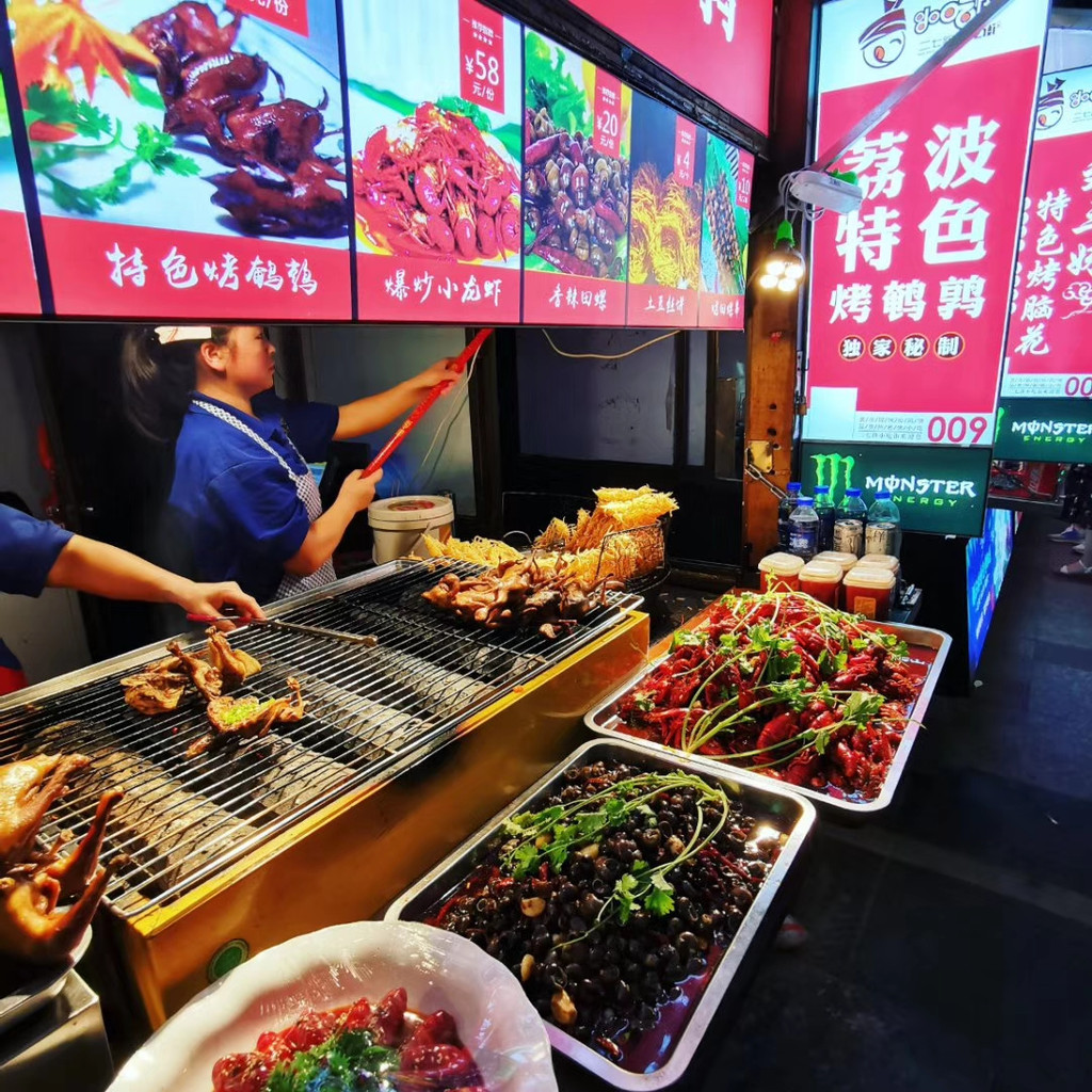 晚上回到贵阳,逛吃贵阳二七路小吃街。直接兑换卡,一条街都可以刷,当然直接微信支付也是可以的,环境很好。豆腐和猪脚好好吃,这里的辣椒面也太好吃了吧?小弟们辣椒面不要钱那样给我撒,辣到飞起,但也好好吃!!金牌罗记肠旺面没我们昨晚在市场那一家的好吃。打包个乳鸽回去吃,这一堆放一起,好像千与千寻里面那个美食节的场景。我发现贵阳跟重庆一样,都不喜欢普通话,直接用本地话跟你对话,然后阿屁听不懂,问她要不要红油,她说好,然后加了满满三勺。她一脸懵问我怎么这样,哈哈哈。