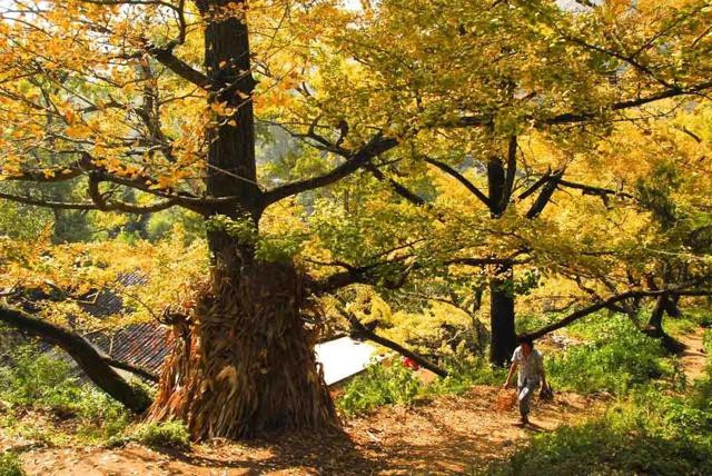 所以现存活在世的银杏稀少而分散,上百岁的老树更是不多见,而在我们的西南方,就有两大绝美观赏地。