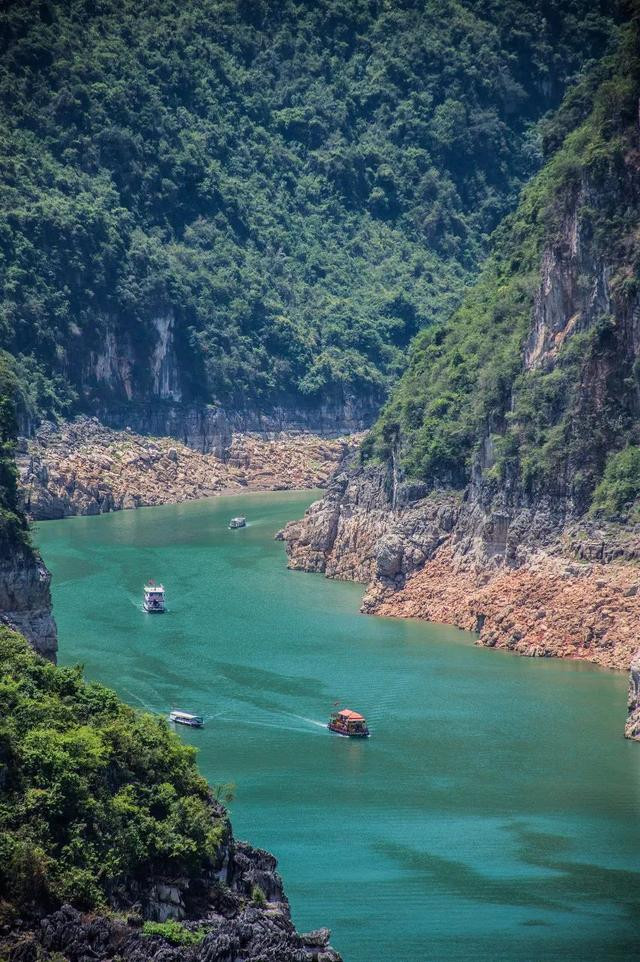 「万峰湖像一片逶迤绵延的绿宝石,镶嵌在万峰林之下,色泽清透,水波明朗,让人看不到一点杂质,只觉山河美好,傍晚时分尤其梦幻,让人忘记所有烦扰。」