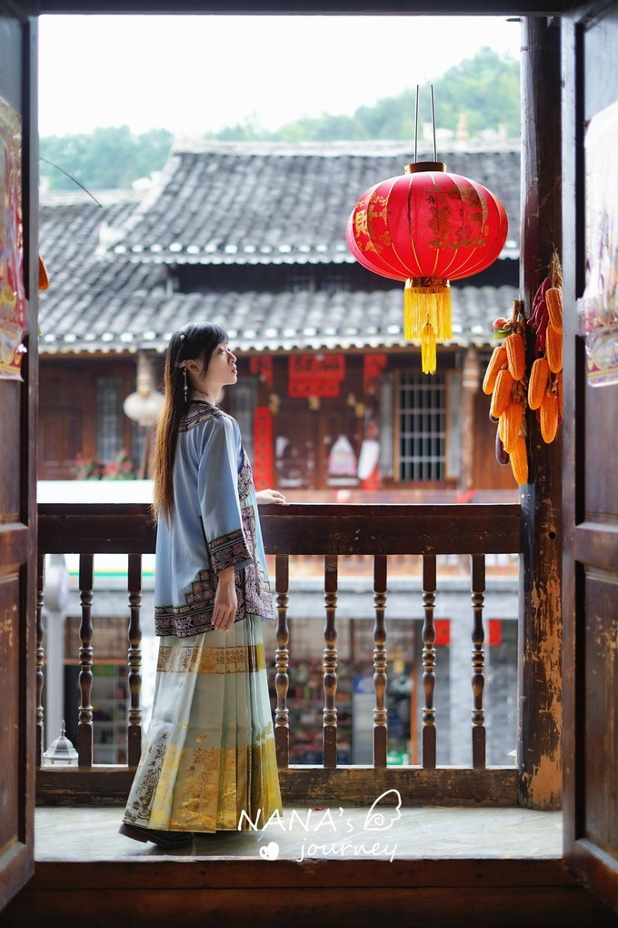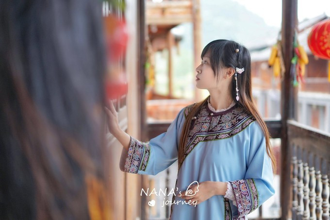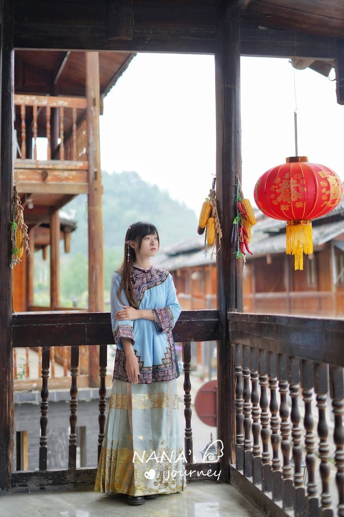 既然来了水寨,民族风的写真当然不能错过,马尾绣的民族服饰,配上自己带的马面裙汉服,中华民族的服饰不管从哪一方面都是非常适合搭配在一起的。