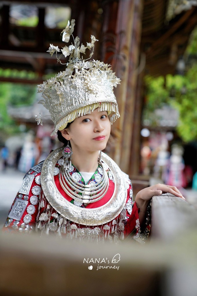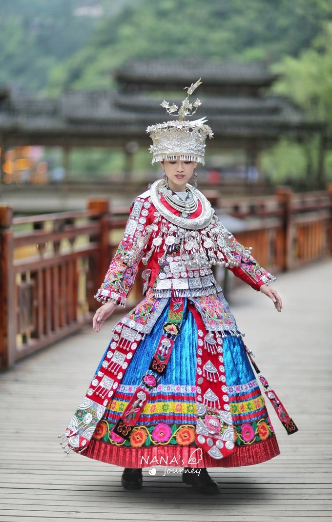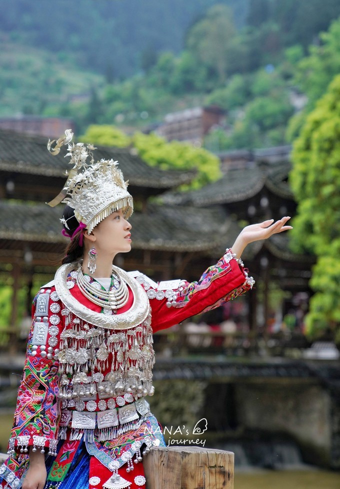 穿上苗族的盛装,听身上银饰的碰触声,是多么美妙呀!