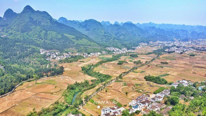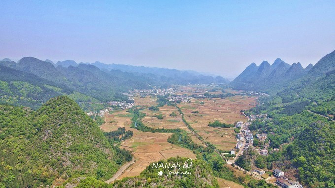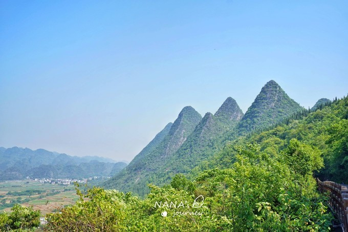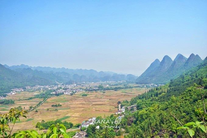 这片区域也是整个万峰林景色最开阔的地方,从中间的视角欣赏整个万峰林的美景。两侧连绵的山峦,层层叠叠,蔓延向远方,中间是布依族人的生活地,能一直生活在美景之间真是舒适呀。