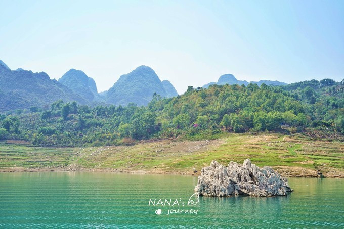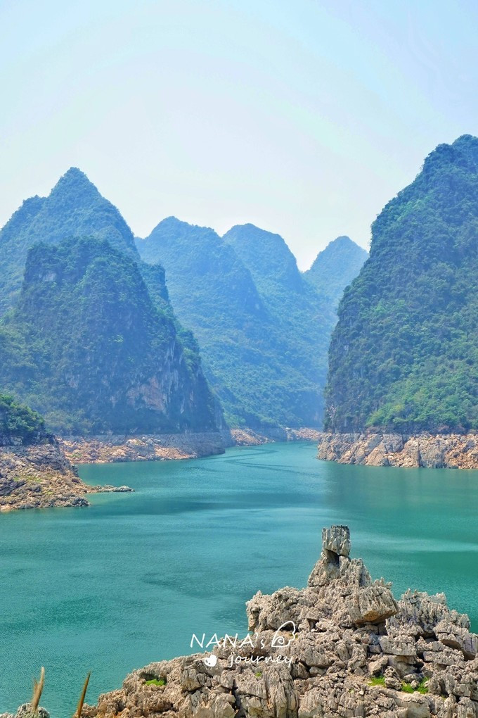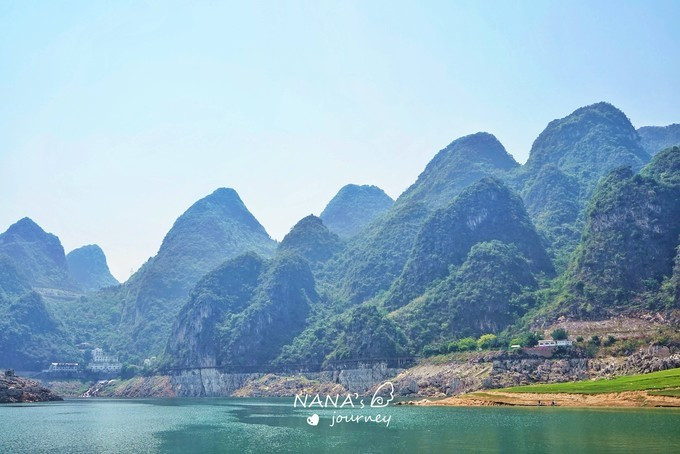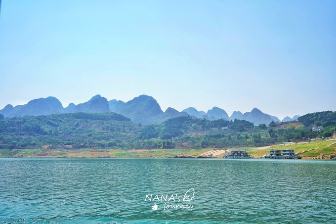 万峰湖很大,刚到码头便是湖与万峰的山水美景,让我们都连连称赞。有了水的峰林更加的温柔而美好。