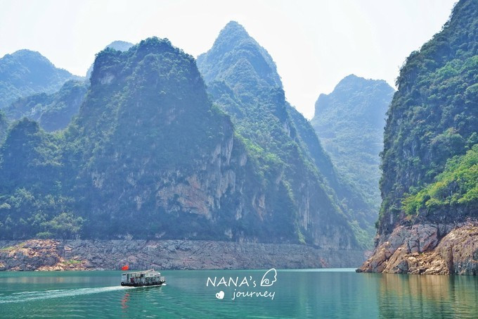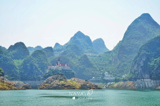 船一共走两条线路,一条是开阔的湖泊景色,万峰林做背景,直到万峰湖一大网红景点——城堡为止。