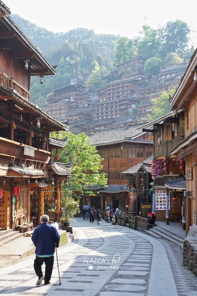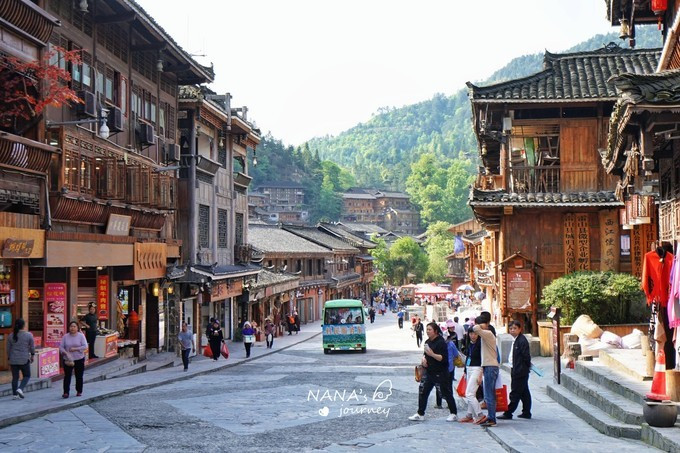 进入寨子的路也是西江苗寨的主干道、商业街,别看寨子在山里,他们当地人是有自己的小巴的,不过游客并不能乘坐。