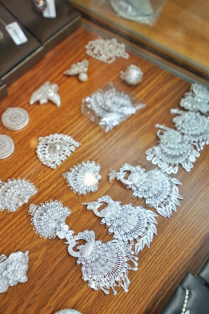 吴水根自己也有经营苗银的售卖,但也是希望把更好的苗银的传统展示给更多的人。我们欣赏着,也被这些精美的饰品所感叹着~