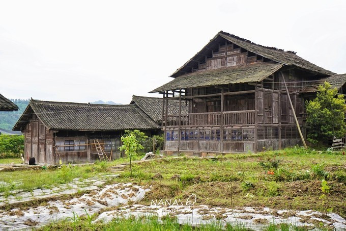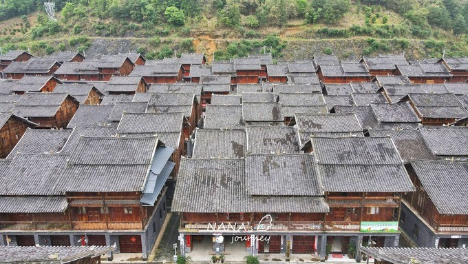 寨子中的房屋基本都是木质结构,是典型的吊脚楼建筑,密集度很高。这样的建筑不仅适用于平地,也适用于山体的斜坡。