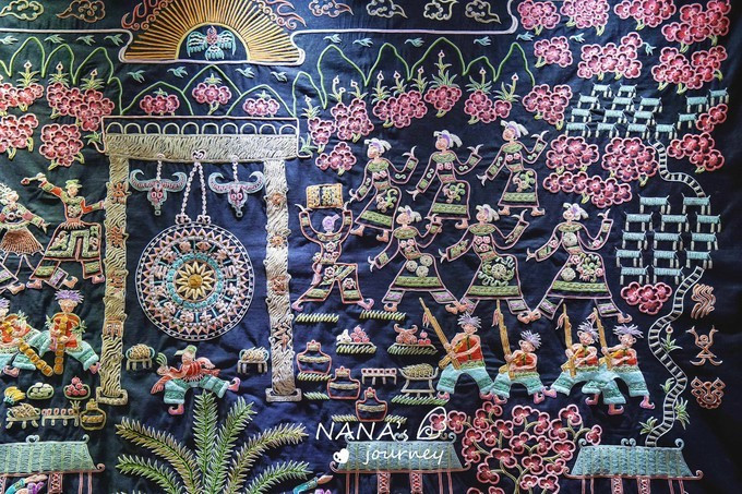 不仅是传统的花纹图案,各种画作也同样可以由马尾绣来表达出来,展示水族人民欣欣向荣的生活。