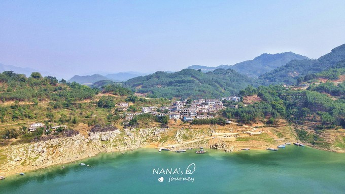 青山绿水间,坐上一艘船儿,穿梭在美景之间。