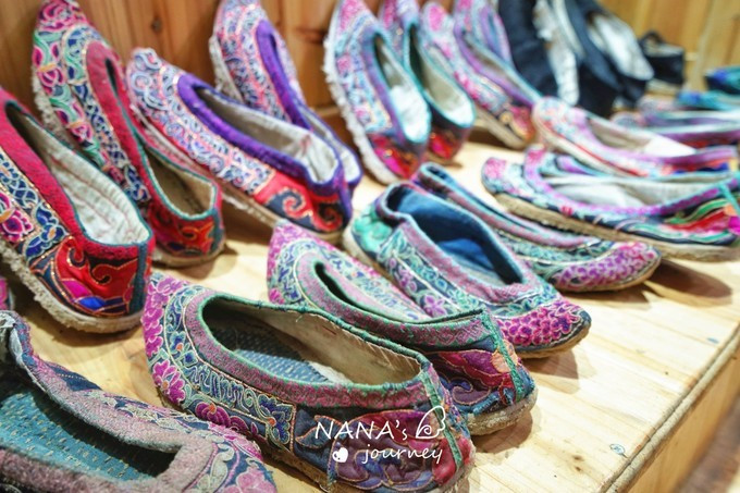 博物馆中的展品更加的丰富多彩,从绣品到衣物到鞋子,甚至有好几十年前的用品。果然马尾绣的经久耐磨是他最大的特色,颜色也保持的非常好~