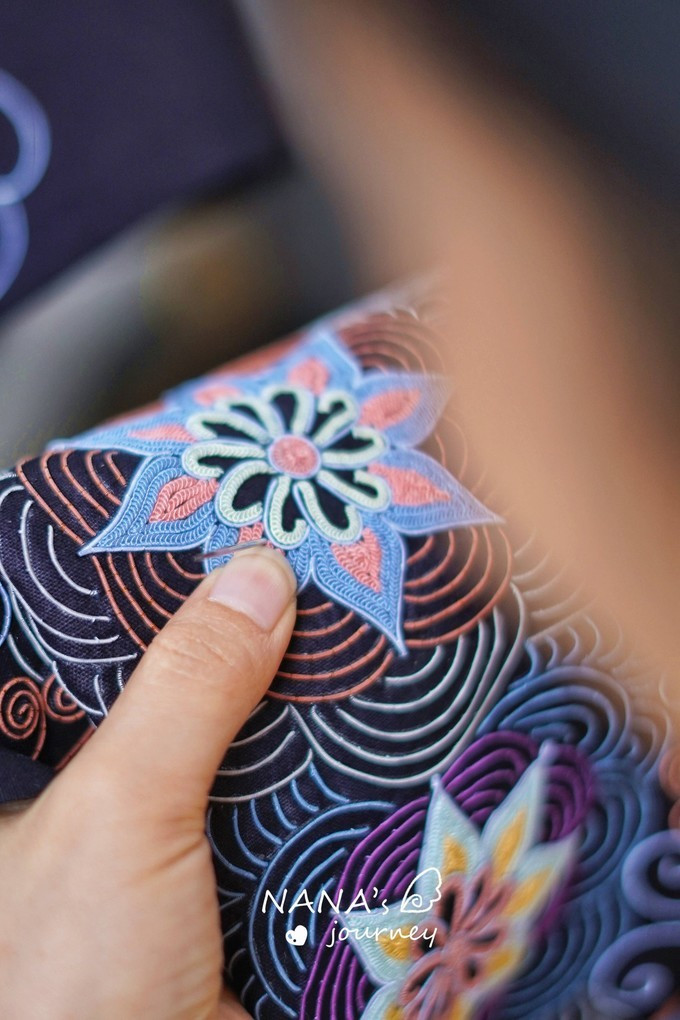 然后再用马尾线刺绣,绣上水族喜欢的图案,变成了马尾线。马尾绣的淡雅的颜色,非常的稳重而精致,每个民族的各自的特色还是让我们都喜欢的很。