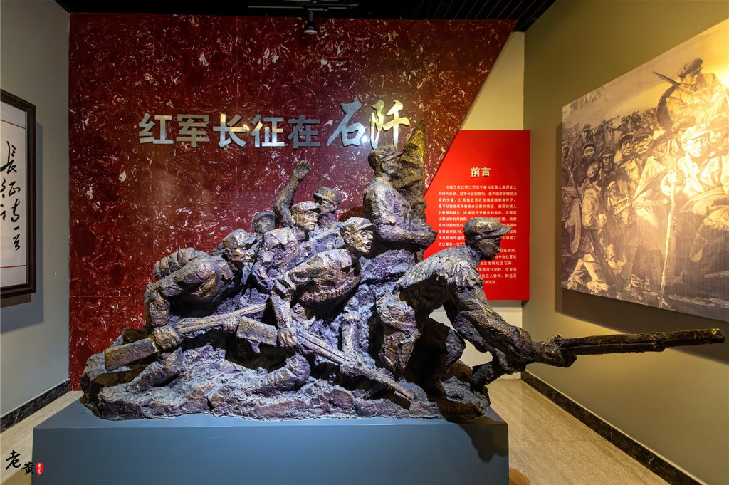 在陈列室中,通过图片,文字和部分雕塑展现了红军的抗战史。向游客重新讲述那一段可歌可泣的历史故事。虽然石阡陈列室比不上前面几站那么宏大壮阔,但仍然有着独特的情怀。