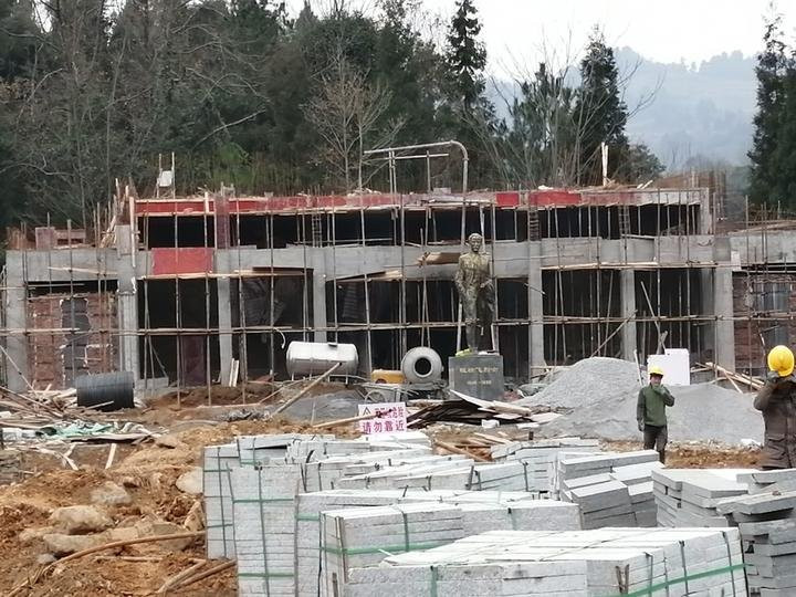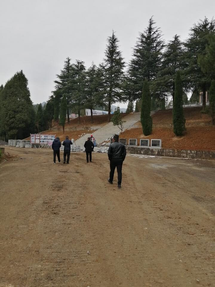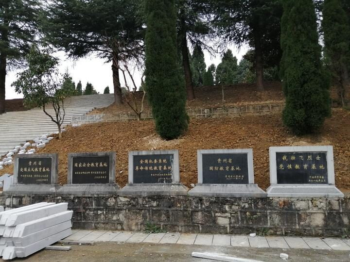 过了钱壮飞大桥,我们来到毕节市金沙县后山镇贵山村,这里建有钱壮飞烈士陵园,是贵州省爱国主义教育基地和“党性教育基地”。陵园里有钱壮飞烈士墓区和事迹陈列室,我们来到这里的时候,陈列室正在扩建,没办法参观馆内藏品和文物,但是烈士的墓还可以瞻仰。今年是钱壮飞牺牲86周年。钱壮飞烈士墓在半山上,墓前有一行金色大字“钱壮飞烈士永垂不朽”,走上一段阶梯,是钱壮飞烈士之墓,在这里,柏总请来了毕节市金沙县后山镇初级中学何佑明校长给我们讲解这位“龙潭三杰”的英雄事迹。
