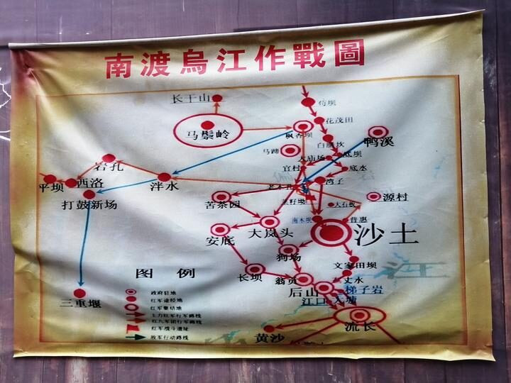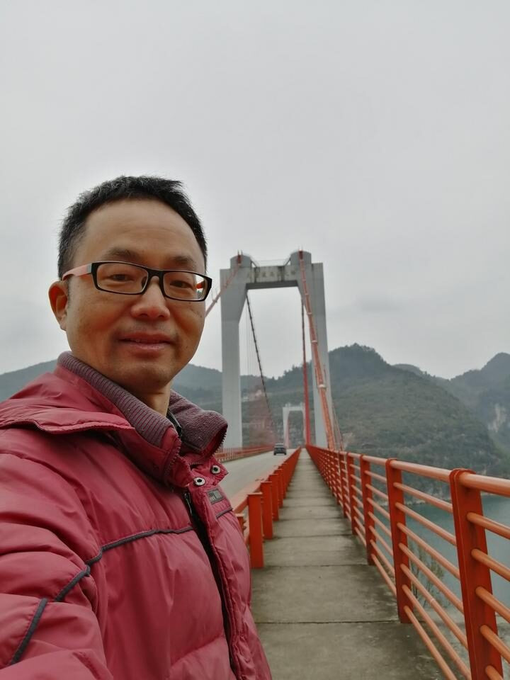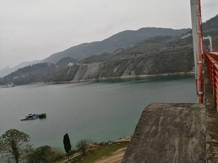 我们来到金沙县大塘渡乌江大桥,柏总说,河对面的桥右边下面,就是钱壮飞牺牲的地方,所以当地人叫这座大桥为“钱壮飞大桥”。当年这里是悬崖峭壁,河水在下面100多米下。现在的河面很宽,是因为70年代搞了大坝,水才涨起来的。站在大桥看周围的风光还真不错,水面平静,更像湖一样。完全想象不到,当年这里发生过激烈的战争。