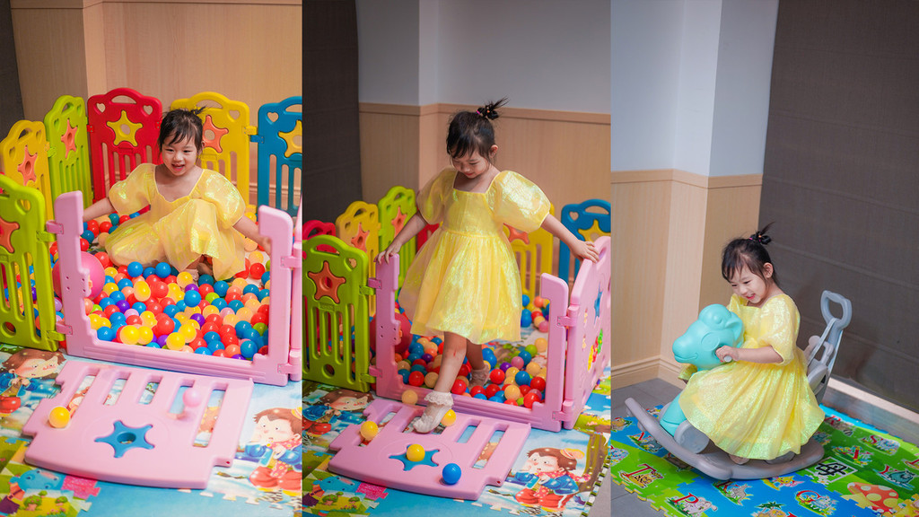 有一个迷你版的海洋球是小萌的最爱,每次回到房间就迫不及待的钻进去玩耍了。