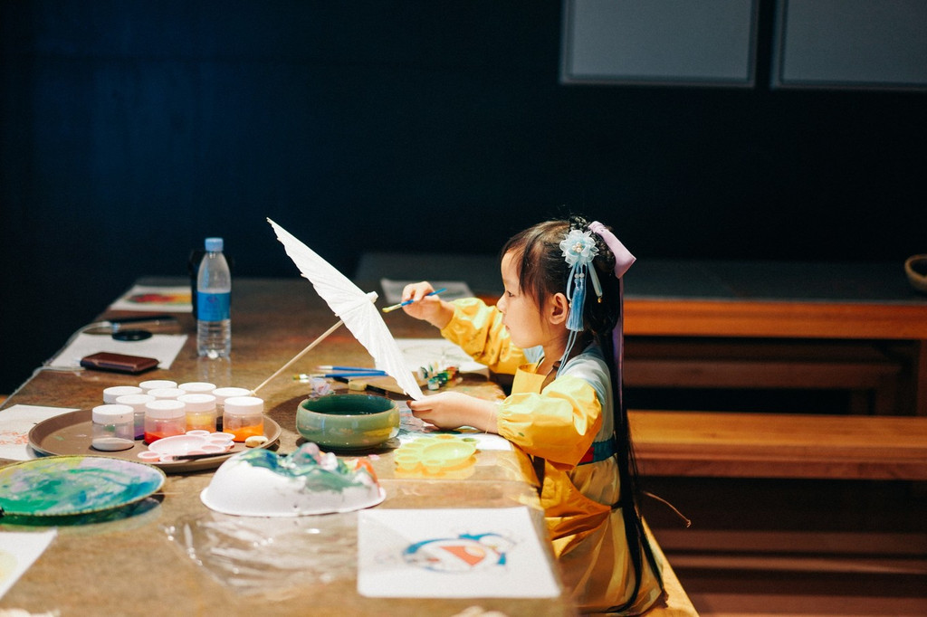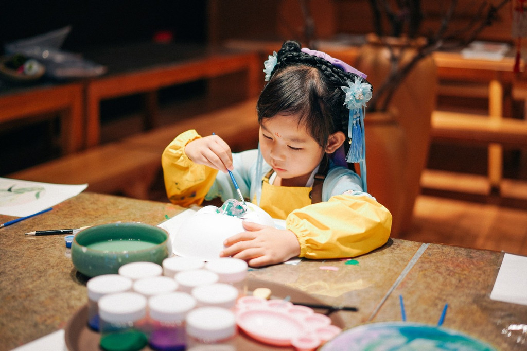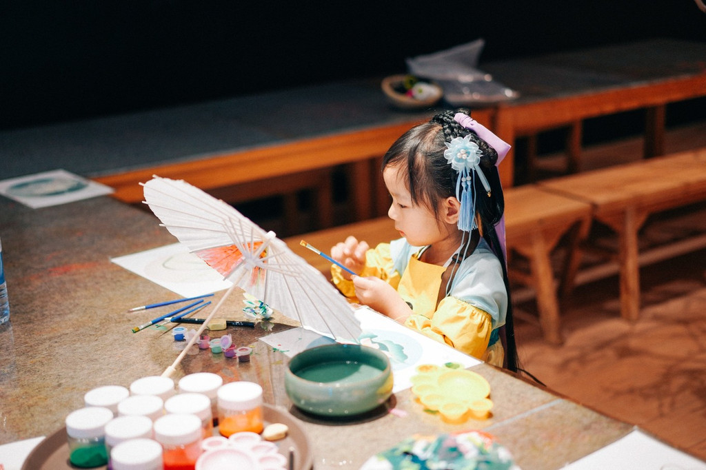 在酒店的活动还蛮多的,还可以让孩子画脸谱,画扇子,画伞的传统手工体验,也非常锻炼孩子的耐心和审美。