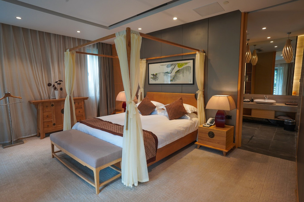 整个酒店的装修都走的古朴典雅的风格,穿着汉服出来拍照也非常的出片!