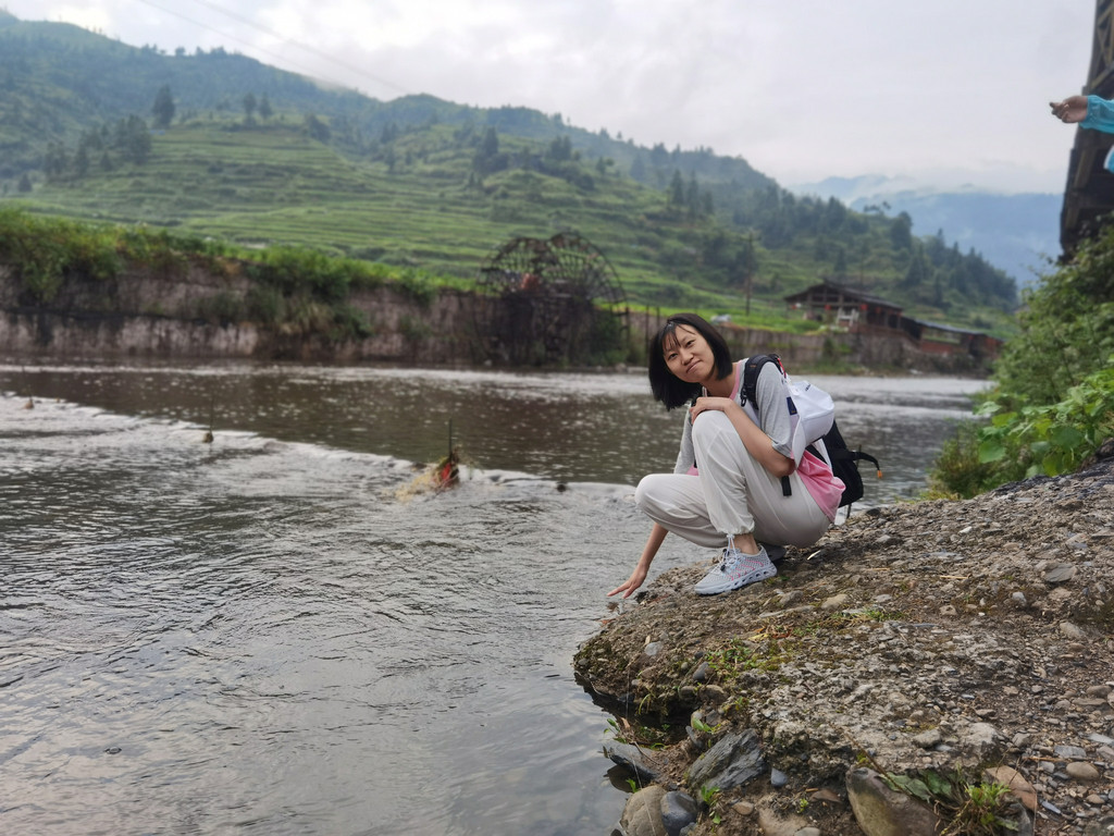 都说西江已经商业化了,千户苗寨变成了千宿苗寨。进寨建议不带手提箱是对的,因为摆渡车是先一段公交车->步行400米(下山容易,回程上山难呀)->一段电瓶车。然后开始给客栈打电话问路线找酒店,但打开房间门时一切就感到值得了。坐在邻水塘的窗旁,看满眼绿色的梯田,心中立刻安静,老公说就想坐在房间里看着这样的景色发呆,原来再秀美的景色也是一时欢娱的刺激,心中更渴望的还是静下来让身体精神都能歇一歇。