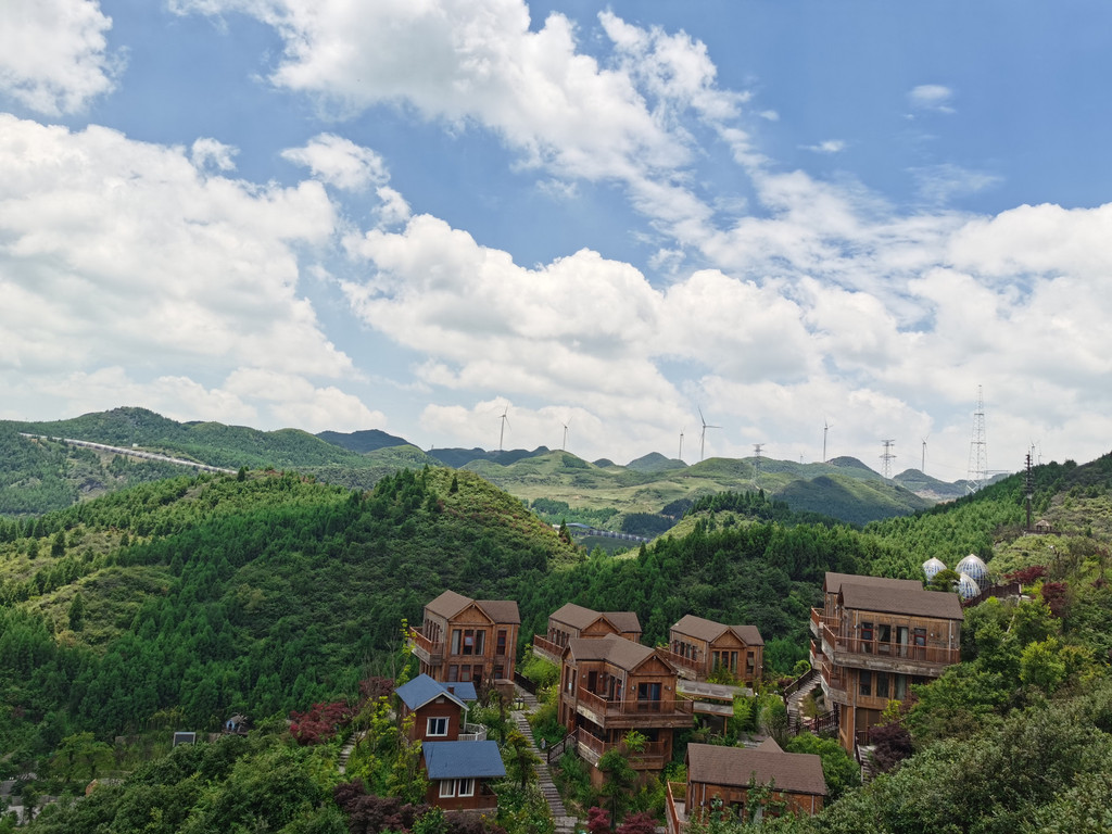 先说说野玉海山地户外旅游度假区。如果你不擅长户外运动的话,这里主要就是参观建在山顶上的网红民宿了,包括天空之恋酒店、星空酒店、云端沐屋别墅、绿色森林酒店,都是一家云南的企业承包运营的。其中天空之恋酒店被评为贵州最美民宿,酒店设计的吊桥观景台可以远眺到北盘江大桥,每间独栋小别墅都建在山谷中,视野开阔、空气清新,酒店有摆渡车往返于各个别墅之间,当然价格也很贵两三千一晚,提供早餐,一家4口人住还算划算的。酒店的附属设施还在完善中,天空咖啡厅尚未营业,天空餐厅也还没有想象中那么好。