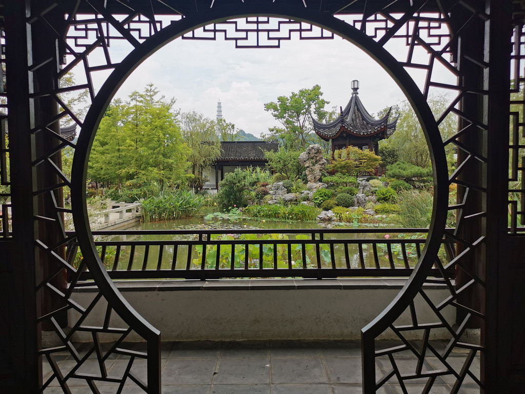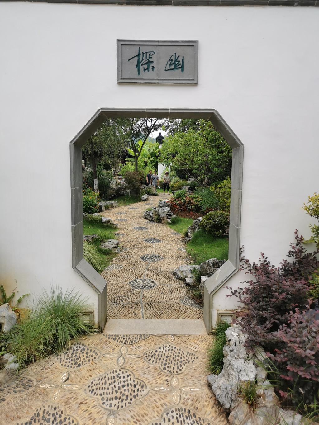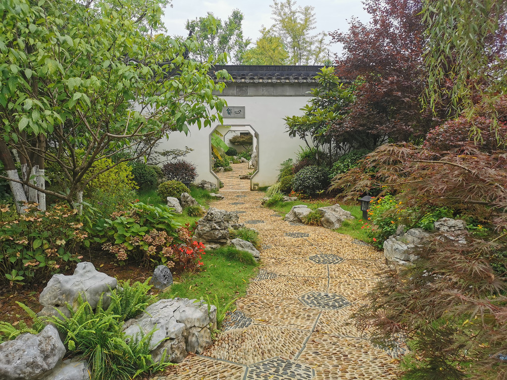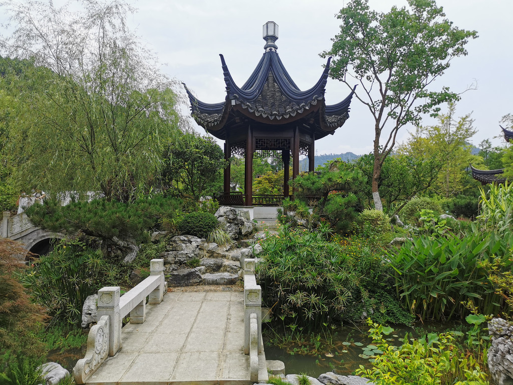 绿博园有东门、南门、西门三个出入口。很庆幸我们是从南门进入的,第一时间细细地游览了南门附近的上海、浙江、江苏等几个展园(到后面实在走不动了,很多展园就只能略过了)。这几个展园都是我比较喜欢的,园区布置温润聘婷、轻柔细腻,尽显江南的婉约之美。我尤其喜欢江苏园里的小桥流水、亭台楼阁、清雅拱门、鹅石小径,看来参展者是下了一番功夫的。