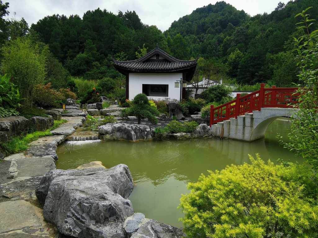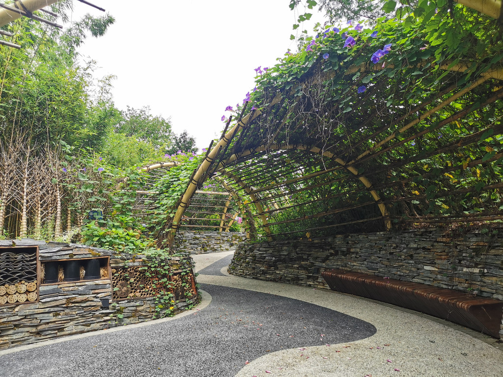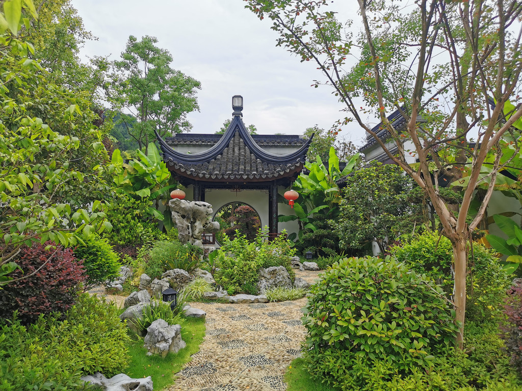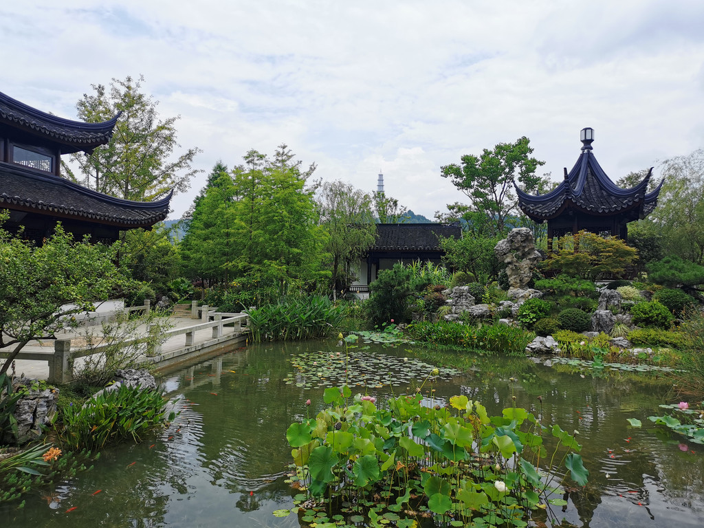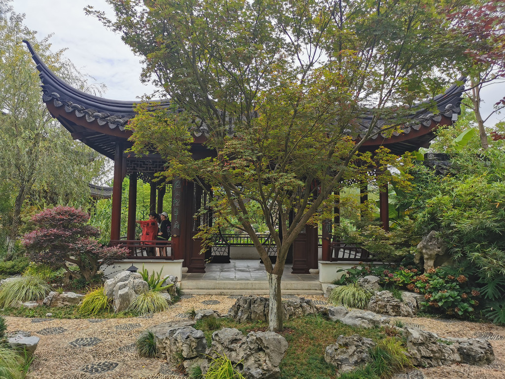 绿博园有东门、南门、西门三个出入口。很庆幸我们是从南门进入的,第一时间细细地游览了南门附近的上海、浙江、江苏等几个展园(到后面实在走不动了,很多展园就只能略过了)。这几个展园都是我比较喜欢的,园区布置温润聘婷、轻柔细腻,尽显江南的婉约之美。我尤其喜欢江苏园里的小桥流水、亭台楼阁、清雅拱门、鹅石小径,看来参展者是下了一番功夫的。