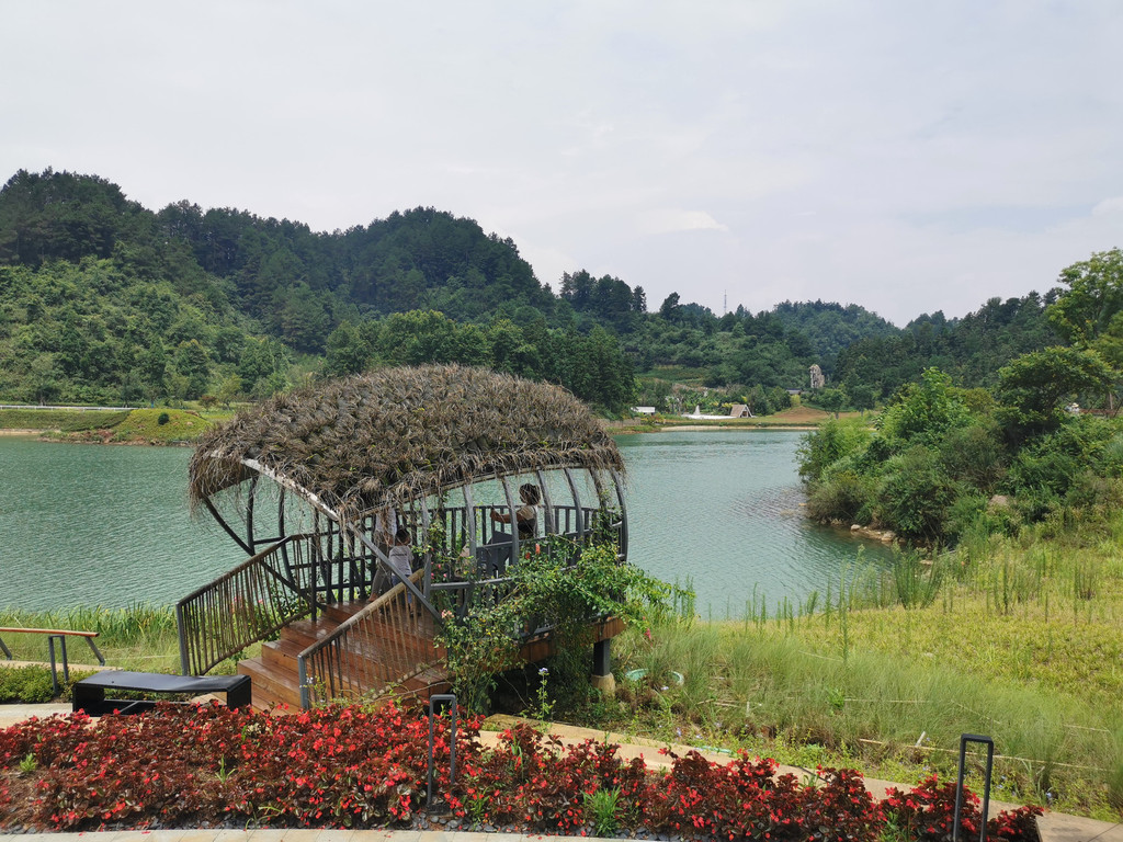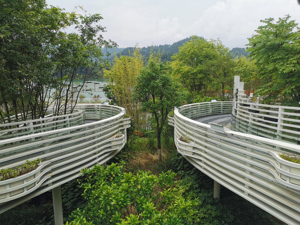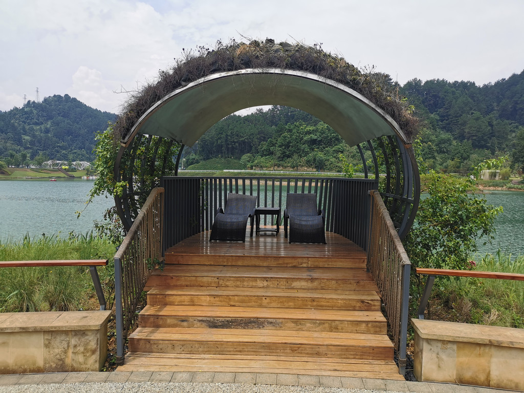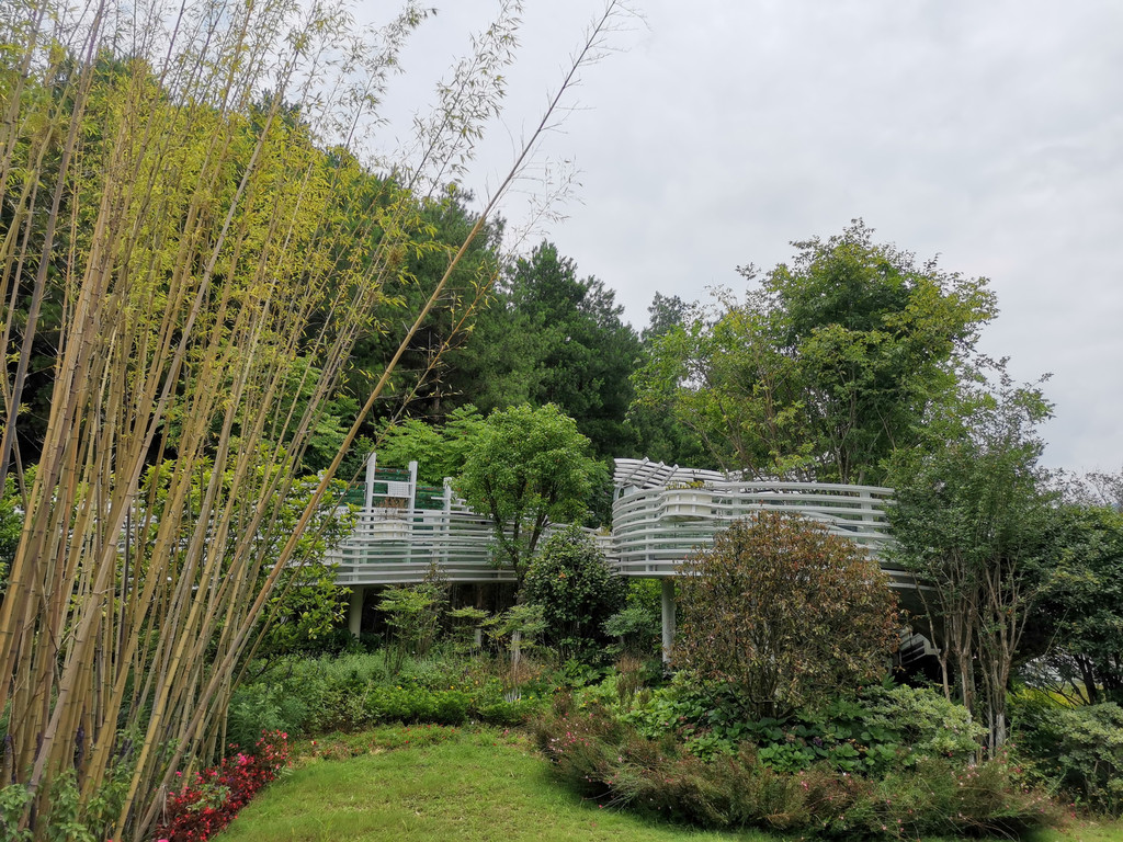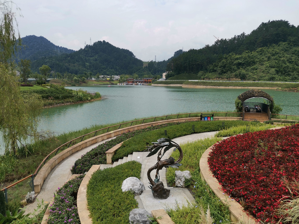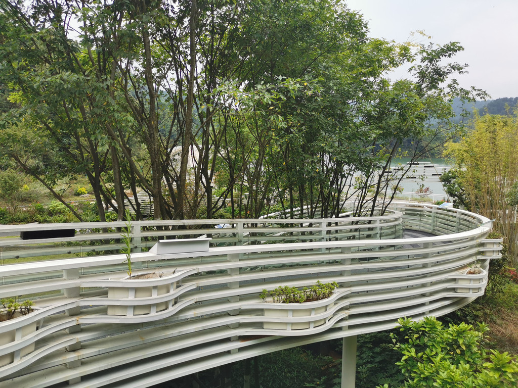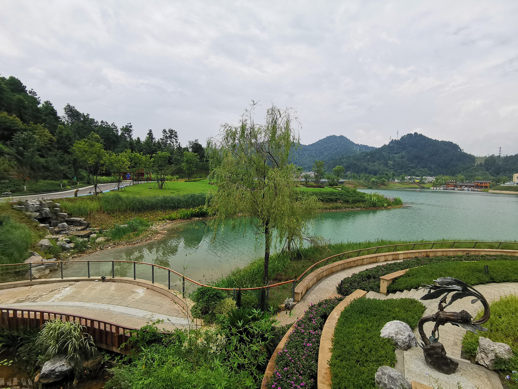 都匀游玩的第一站,我们到了青云湖。我们感觉其实也就是一个普普通通的湖,周边有绿树青草环绕,一条蜿蜒的步行栈道环湖一周,倒是一个徒步锻炼的好地方,但是游玩性和观赏性并不高。因为老公一直惦记着要去刚才来时路过的绿博园,我们只是沿着栈道走了一小截就返回大门离去了。