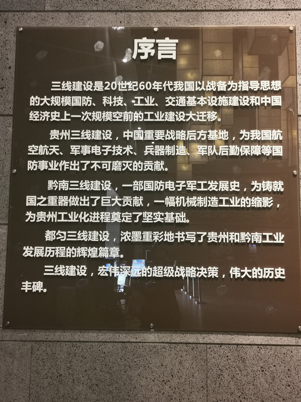 都匀三线建设博物馆。“2016年,黔南州和都匀市筹划"都匀三线文化创意园",规划总用地228148平方米,总建筑面积135884平方米。2017年4月在原东方机床厂旧址上建设都匀三线建设博物馆,利用部分旧厂房及设施改造修建。分为文博板块、会展板块、休闲娱乐板块。”(摘自网络文献)