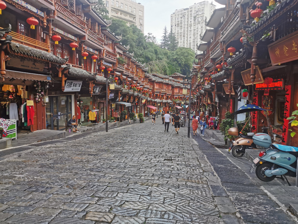 都匀有名的石板街。被岁月磨得圆润光滑的石条板路面,沟沟壑壑里都是故事。