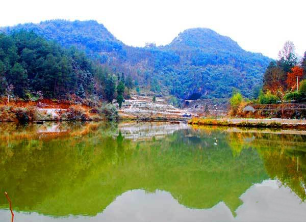 走进凤冈县进化镇临江村泡桐组,映入人们眼帘的是白雪覆盖下的一幢幢雕花窗、白粉墙、小青瓦,挂着红灯笼的黔北民居;一排排或青砖、或黄砖打造的围墙走廊;一棵棵盛开的桂花洒满了金黄的金子,香气四溢,沁人心脾。农家花园里盛开的一串红、玫瑰、四季海棠芳香四溢;农家房屋绘上了勤劳致富、文明和谐,各种花、草的精美图案;一户户农家乐里传来游客欢乐的笑声。这里的农村一改往日的旧貌,“四在农家•美丽乡村”促进了农村乡风文明的彻底改变。