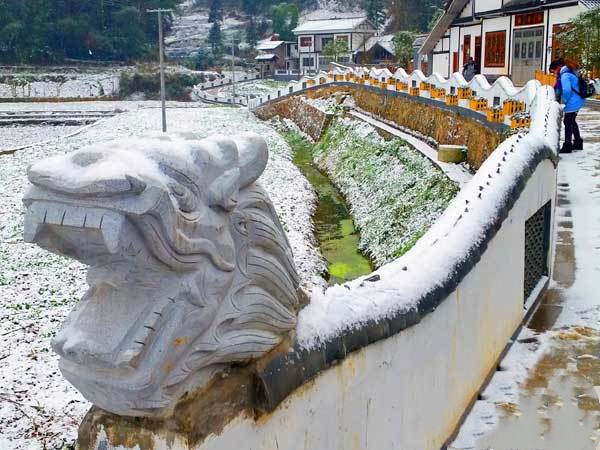 专家组领略了凤冈茶文化的独特魅力,紧接着,凤冈进化镇临江村泡桐组“四在农家•美丽乡村”示范点,其靓丽的乡村美景又展现在眼前。1月23日,是专家组来凤冈的第二天,一早起来人们眼前是一片白雪皑皑,银装素裹的美丽景致,原来从夜里开始,凤冈迎来了一场八年未见的飞雪。周宗琴副县长笑着说:这是专家组给这里带来的好运。纷飞的飘雪,让昔日落后的临江村旧貌换新颜的美景,更是平添了一道优美靓丽的风景线。