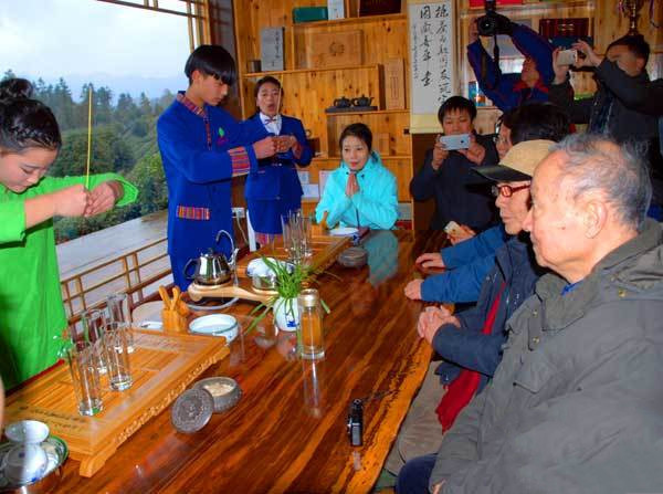 陪同专家组而行的时任凤冈县常务副县长张大亮、时任凤冈副县长周宗琴、时任凤冈旅游局长熊玉飞等人,分别向大家介绍各自熟悉的情况。其中,主管旅游的熊玉飞局长是个天生的乐天派,他拥有一副天生会唱歌的好嗓子,经他倾情奉献的一曲独具特色的茶歌,不仅让大家领略了他的歌声,而且透过歌声更是对凤冈有了一份深刻的感知。